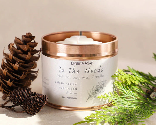 Clearance beschädigter / VERBEULTER BEHÄLTER - Myrtle & Soap IN THE WOODS natürliche Sojawachs Kerze