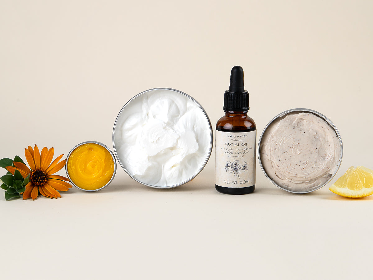 At Myrtle & Soap, we prioritise purity by using only essential oils for scent and natural colourants like herbal powders and clays