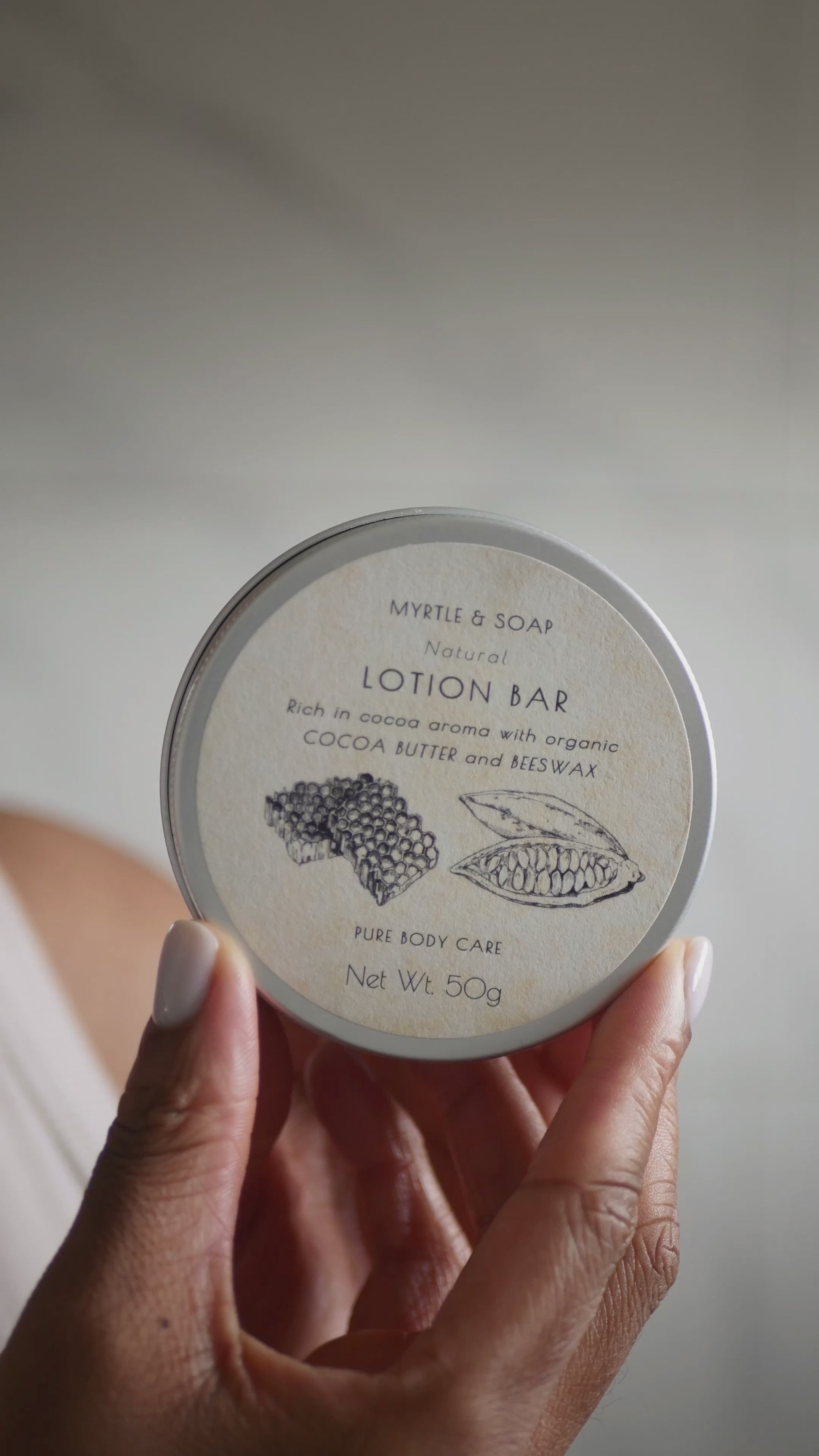 Hergestellt ohne synthetische Duftstoffe, Farbstoffe, Konservierungsstoffe oder ätherische Öle, spendet unser verwöhnender Lotion Bar Linderung für trockene Haut, selbst die empfindlichste. Mit dem natürlichen, köstlichen Duft von cremiger Bio-Kakaobutter nährt dieser himmlische Riegel tief mit Vitamin E aus Weizenkeimöl und bildet eine schützende Barriere mit nachhaltig gewonnenem Bienenwachs. Jeder handgefertigte Lotion Bar wird in kleinen Chargen sorgfältig hergestellt, um Frische und Wirksamkeit bei jeder Anwendung zu gewährleisten.
