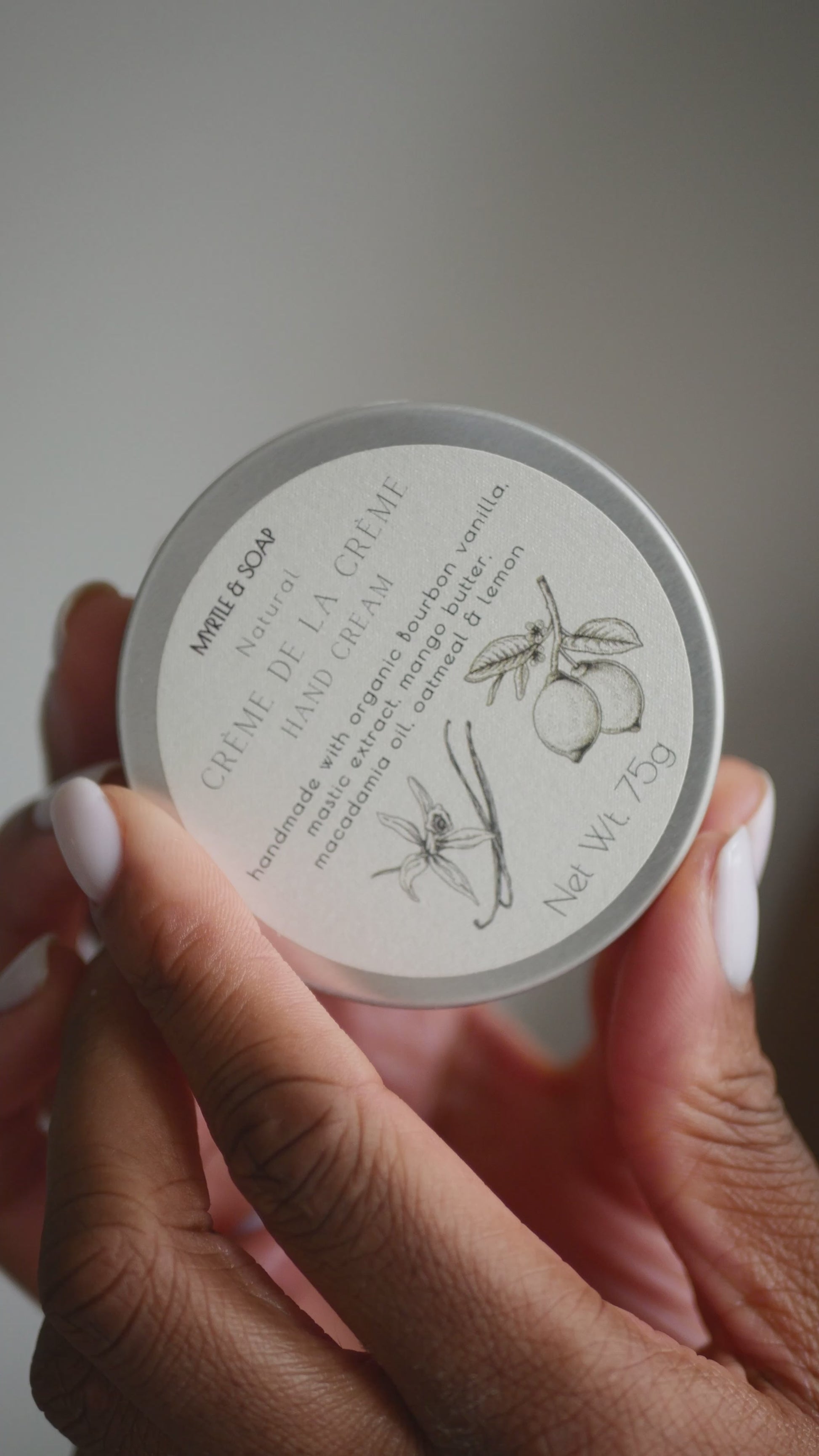 Genieße diese luxuriöse Handcreme, hergestellt aus 100% natürlichen Zutaten, sorgfältig formuliert, um deine Haut jeden Tag weich und geschmeidig zu halten. Angereichert mit cremiger Mangobutter und pflegendem Macadamiaöl, enthält Crème de la Crème Bio-Madagaskar Bourbon-Vanille, beruhigende kolloidale Haferflocken und der begehrte griechische Mastix von Chios, bekannt für seine entzündungshemmenden und antioxidativen Eigenschaften. Zart duftend nach Zitronenöl, versetzt sie dich in den Zustand sommerlichen Glücks.
