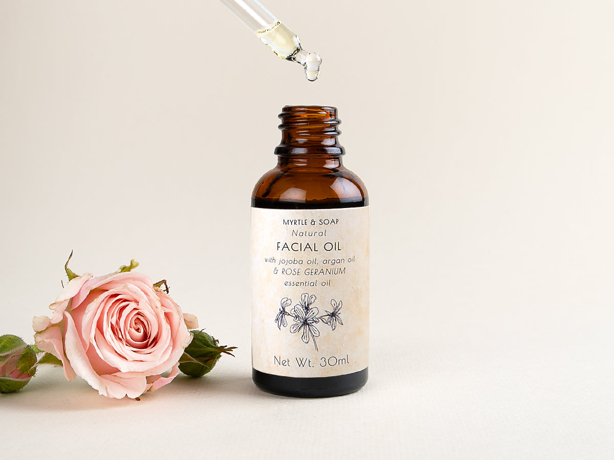 - ein natürliches Gesichtsöl mit Arganöl, Jojobaöl und dem blumigen Duft von Rosengeranie (Nettogewicht 28 g)