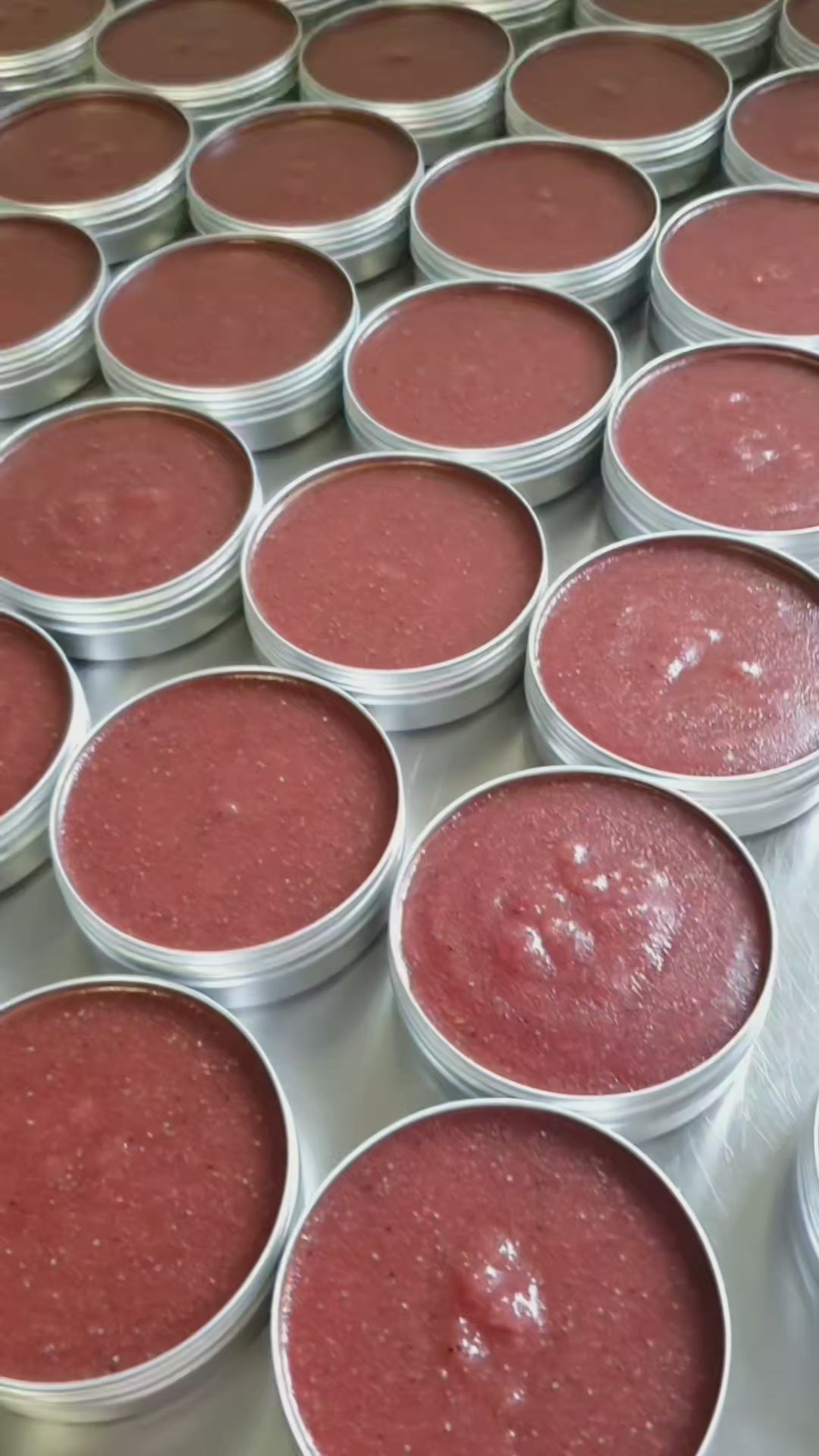 - ein natürliches Cranberry Spice Körperpeeling mit Cranberrypulver, Zimtblattöl, Mangobutter und Beerenwachs (Nettogewicht 130g)